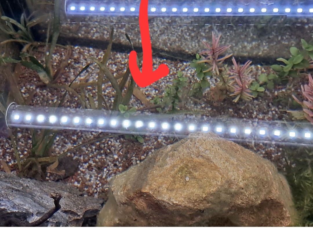 J'ai laissé un bout de plante pourrie, pour essayer. Peut-être est-ce mieux pour l'équilibre du bac ?