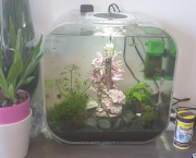 Sinon, les deux aquariums sont très jolis, dans le petit par contre, tes mini crevettes risquent de s'hybrider et la descendance perdra les belles couleurs pour finir grise.