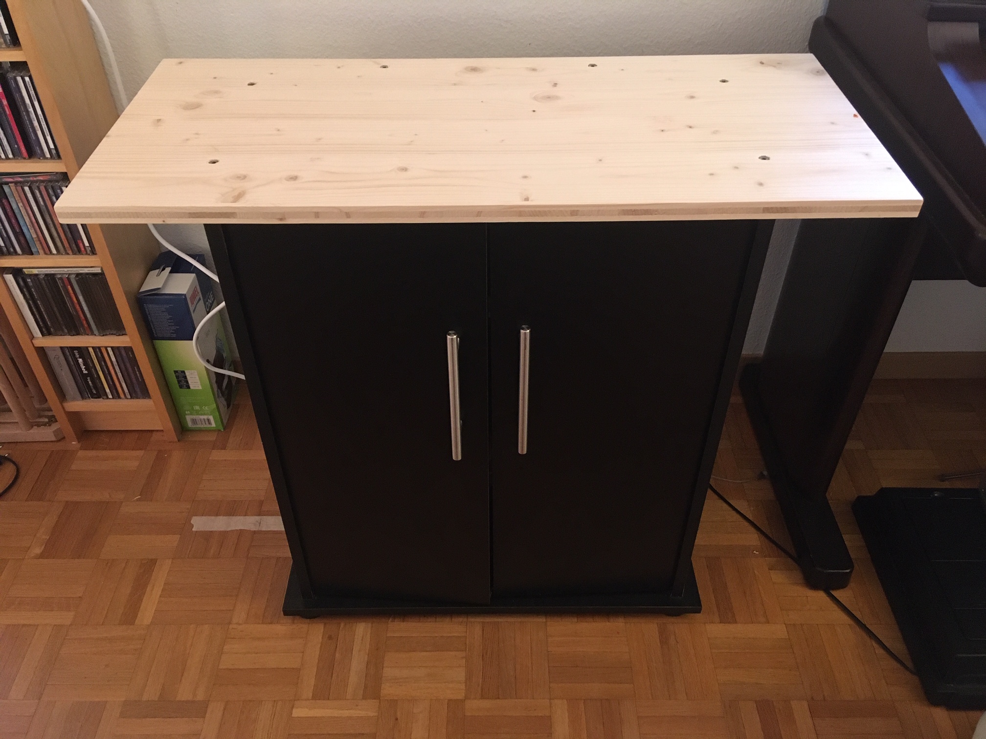 J'ai récemment acquis un bac Juwel 125L avec le meuble d'origine, mais ce dernier a déjà un certain vécu (3ème main), et avait visiblement pris l'eau, ce qui a conduit à dégradation de la planche supérieure.