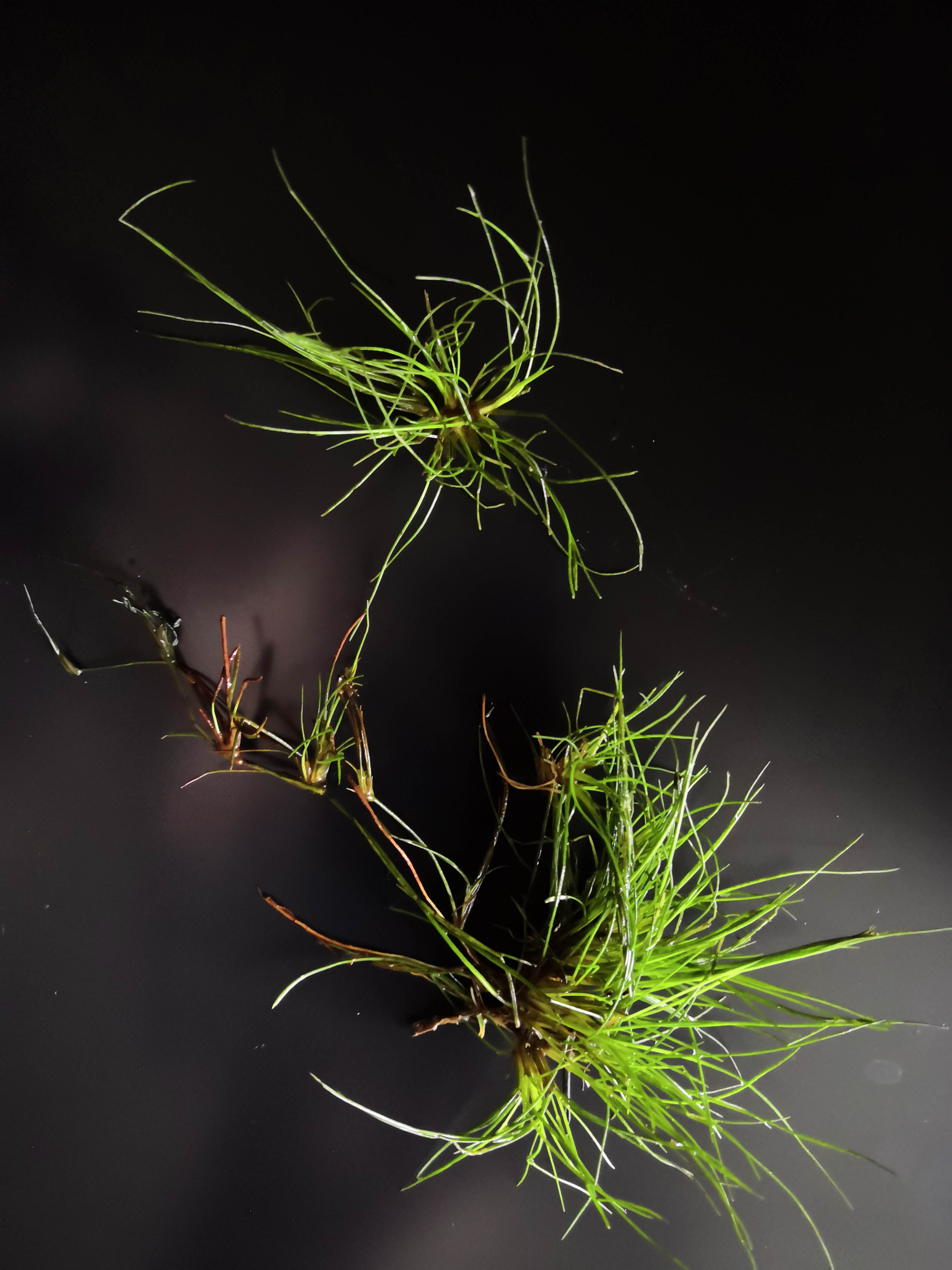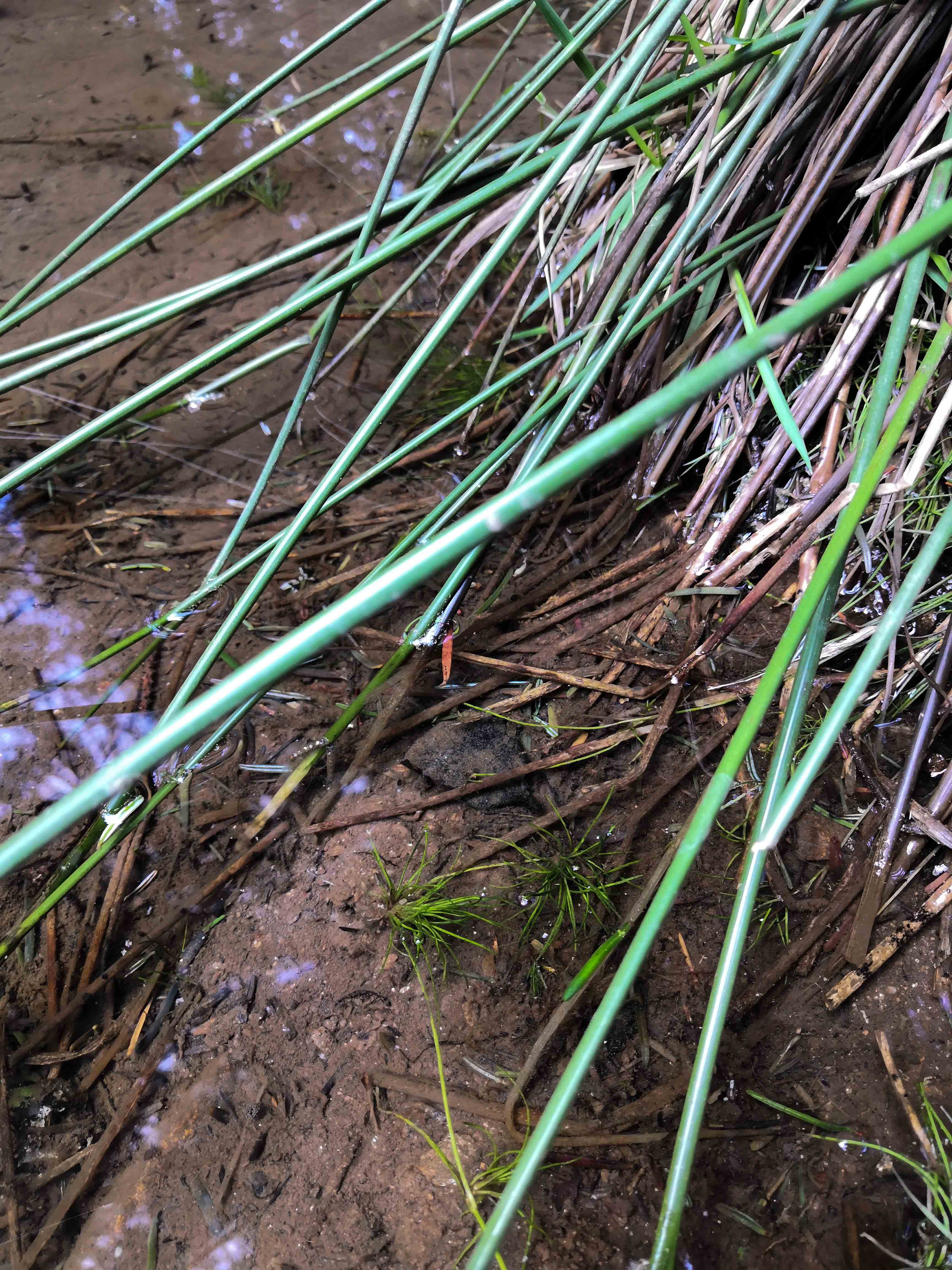 Dans une petite mare forestière d'altitude, j'ai découvert une très petite plante sympathique qui ressemble à une scirpe miniature.  Peut-être une Isoète. Elle pousse sous quelques centimètres d'eau, sur le sol limoneux en eau acide.