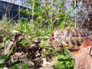Ah, j'adore ces tortues, j'en ai eu 2 étant petite, à l'époque, on pouvait, comme bien d'autres animaux, on les trouvait en vente sur les marchés. La femelle restait sagement dans son enclos, a pondu une fois, mais s'est noyée lors d'un hiver brutal, on l'a retrouvée la tête dans sa gamelle d'eau ! Le mâle était un incorrigible voyageur, on n'a jamais réussi à le garder dans l'enclos, pourtant assez grand, il arrivait à escalader le grillage pour aller se balader chez les maraichers environnants (environ 1m de haut - on a rehaussé, il a creusé! Prison break avant l'heure).Les voisins nous l'ont souvent ramené alors qu'il traversait la route. Par contre il revenait pour hiberner dans sa cabane pleine de paille. La seule chose qui pouvait l'interrompre dans son évasion, c'était des fraises. Il suffisait de lui montrer pour qu'il redescende. C'est cool d'avoir des repros, les pauvres sont de plus en plus rares en liberté. On croise les doigts pour le certificat.