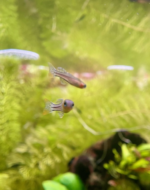 Ils me font rire ces Pseudomugils : je viens de voir un mâle qui, sans doute dans l'excitation de la parade, a eu un moment d'égarement et s'est tourné vers... une neocaridina ! Qui a semblé le regarder l'air de dire "ça va pas non ?!!" (oui je me fais des films  )