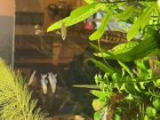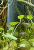 Je viens de les nourrir (nourriture sèche + daphnies) et là en effet ils sont plus en bas en train de chercher les restes... sauf Johnny qui fait le beau.  Et Riquiqui a l'air d'aller bien. Il était à part lors du nourrissage alors il a eu le droit à sa petite portion à lui. Il va falloir que je vois petit à petit pour les dosages parce que là je pense que je pourrais leur donner un peu de bouffe toutes les minutes et ils continueraient à manger non stop !  Toujours impossible de les compter...