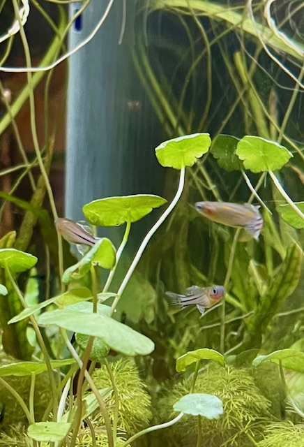 Ahaaa , ça gigote, hein? Ils sont irrésistibles. Sur les photos (et en vrai) on voit bien que les plantes les intriguent. Les mâles vont vite jouer au « c’est moi le chef » et commencer à tanguer devant les filles. Ces dernières vont vite gagner le fond pour leur échapper et trouver à manger. En tous cas, ils seront bien dans ce bel aquarium.
