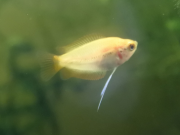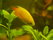 Quelques nouvelles presque 3 mois après les naissances. Finalement, j'ai sauvé 3 alevins qui ont bien grandis et maintenant se mêlent aux autres lors des repas. Voici kikinou, le plus gros des 3. Il mesure un peu plus de 2 cm.
