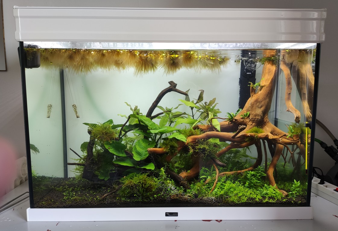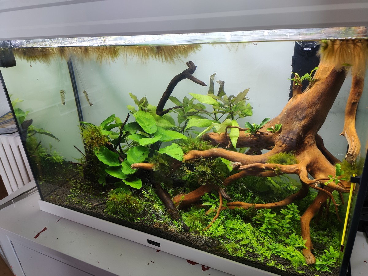 Vraiment super sympa ton aquarium ! J'adore la mousse sur la racine ! C'est quoi ? Sinon bonne continuation !