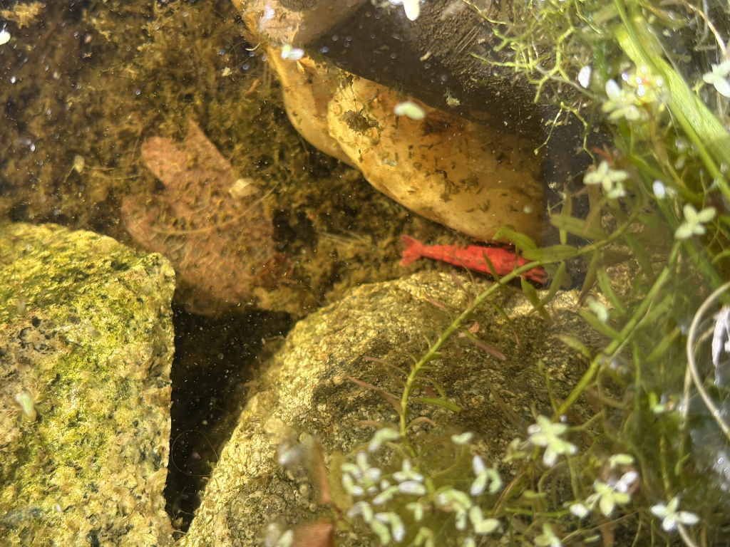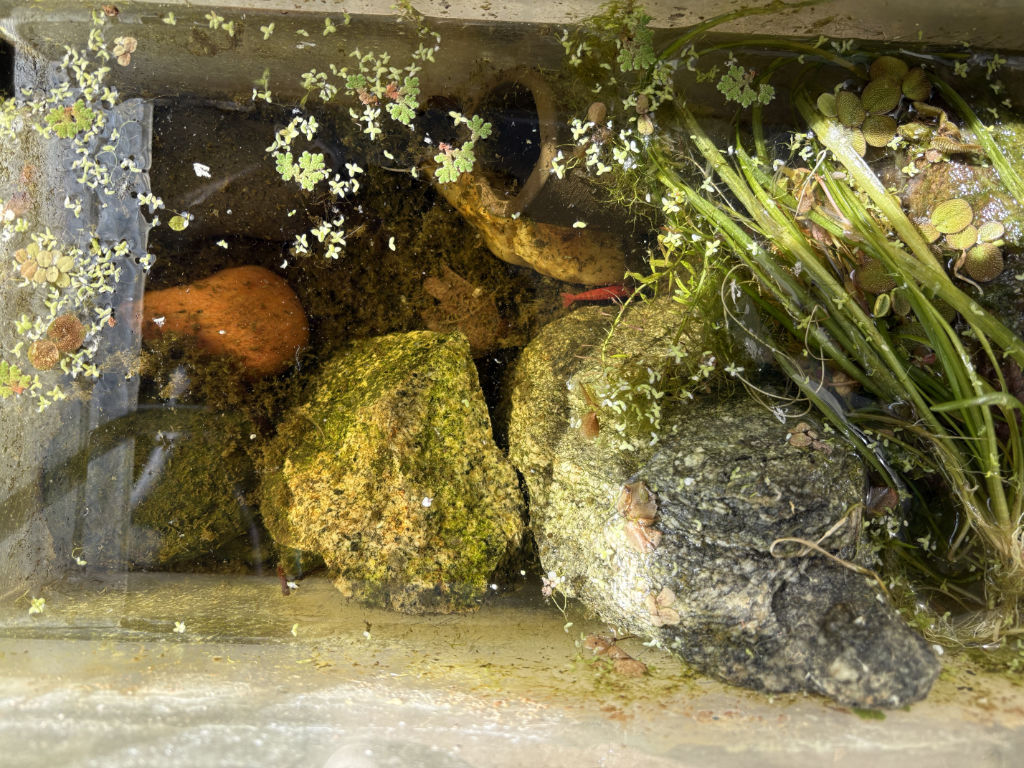 Hier, Hyper2 était à l'affut en surface et a semblé attaquer les lentilles d'eau collées sur la vitre. Chouette ! Il ne mourra pas de faim ! Sauf que... derrière, il y avait un collembole.