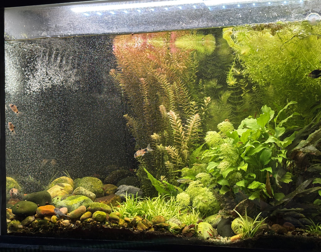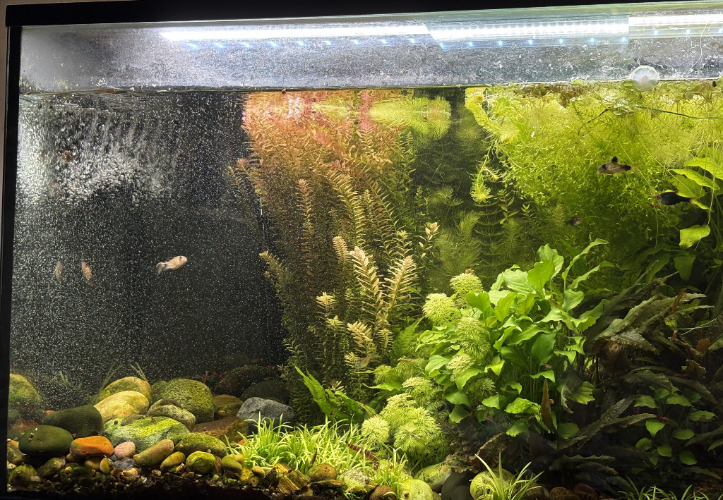 - Le 30l : Automne le Beau Gosse se porte bien, il me boulotte tous les petits mélanoïdes ! Seule la planorbe Roue de Camion lui résiste.