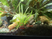 Ou plutôt survivant, car les gertrudes et autres goinfres ont patrouillé autour du bosquet de rotalas toute la semaine. A commencer par Junior, qui a maintenant 1,5cm et une belle bedaine. Bref, trouvé ce Petit Papou hier matin, vite mis en crèche ! Je guette en vain d'autres rescapés, ce serait bien qu'il ne soit pas tout seul. @ Juliette : surveille attentivement les flottantes, il faut faire vite !