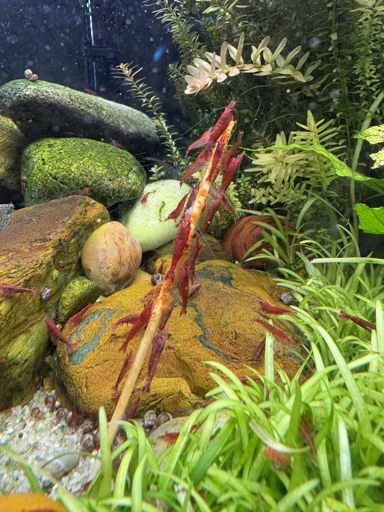 J'adore les "arbres à crevettes" ! Pareil ici sur les Limnophila. Question sur les lollie, parce que j'en avais vu sir des sites en ligne : j'imagine que ça permet de varier l'alimentation des crevettes mais tu en choisis certaines en particulier ? Exemple, le paprika je sais que c'est anti-inflammatoire, c'est pour ça ? Merci !