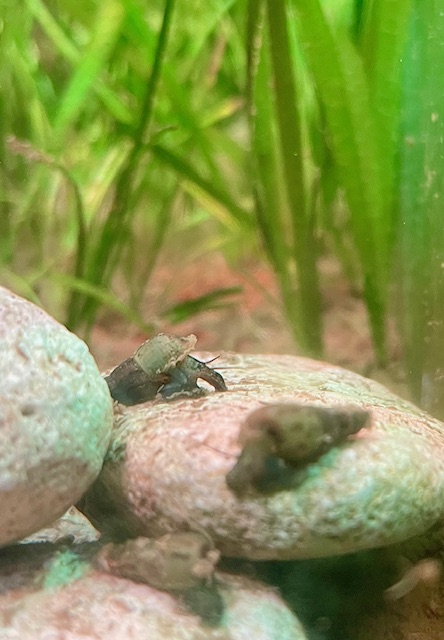 Question subsidiaire : est-ce qu'il y a une relation entre le fait que les galets étaient calcaires et le fait que les mélanoïdes se sont jetés dessus tout de suite et n'ont même pas "dormi" enfouis pour certains hier tellement ils étaient en train de les récurer ? est-ce qu'ils peuvent tirer des éléments pour leur coquille des pierres calcaires ? (Ou simplement il restait des traces de biofilm sur les galets)