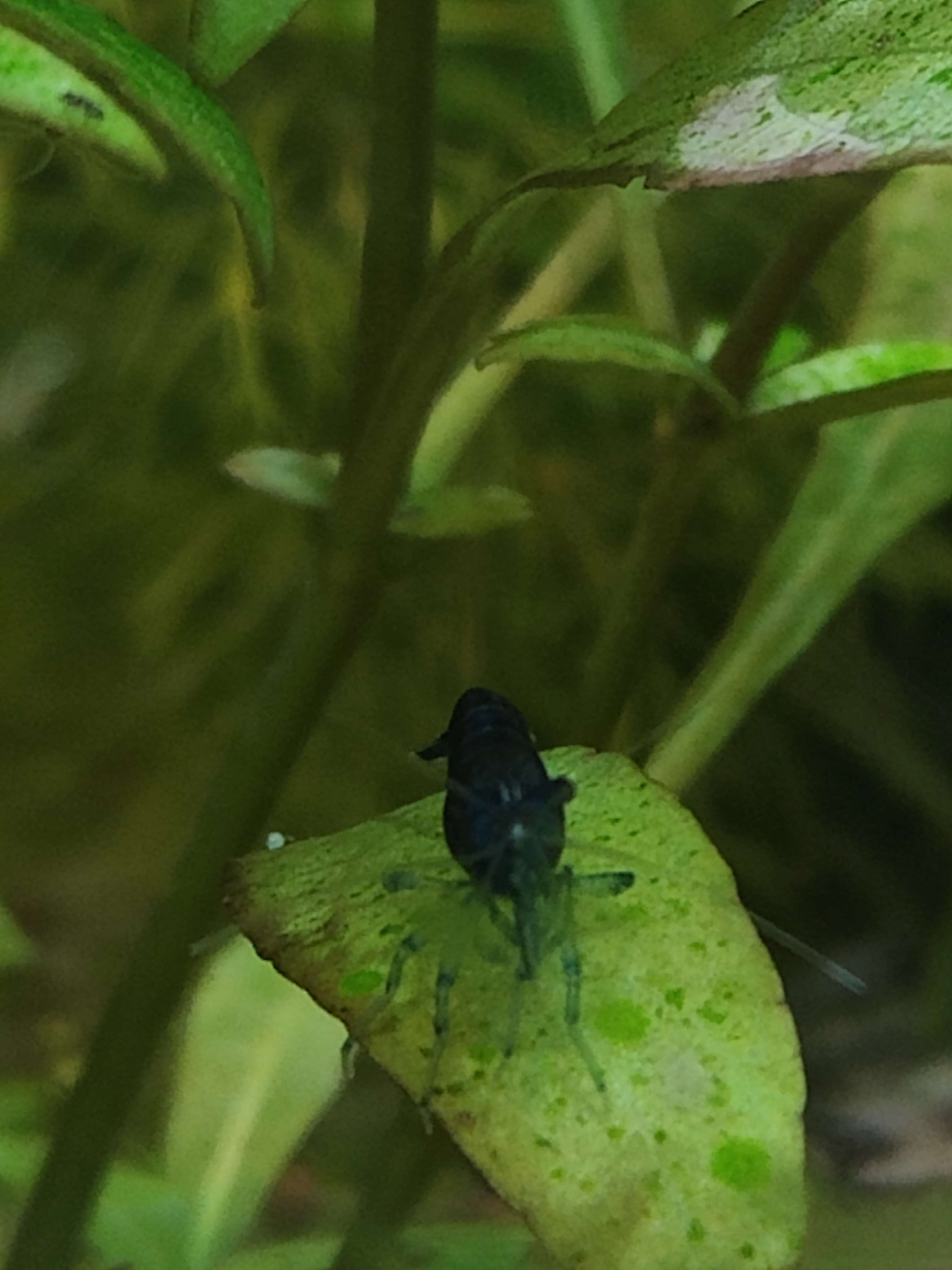 Bonjour tout le monde ! Je suis bel et bien vivant, et mon bac aussi ! Après être revenu en septembre et avoir vérifié mes paramètres, quelques tailles de plantes et des recherches, je suis parti sur les Néocaridinas blue velvet. Mes paramètres ont un peu bougés : No2 proche de 0, PH qui descend (aux alentours de 7.2) et température raisonnable (22°C).