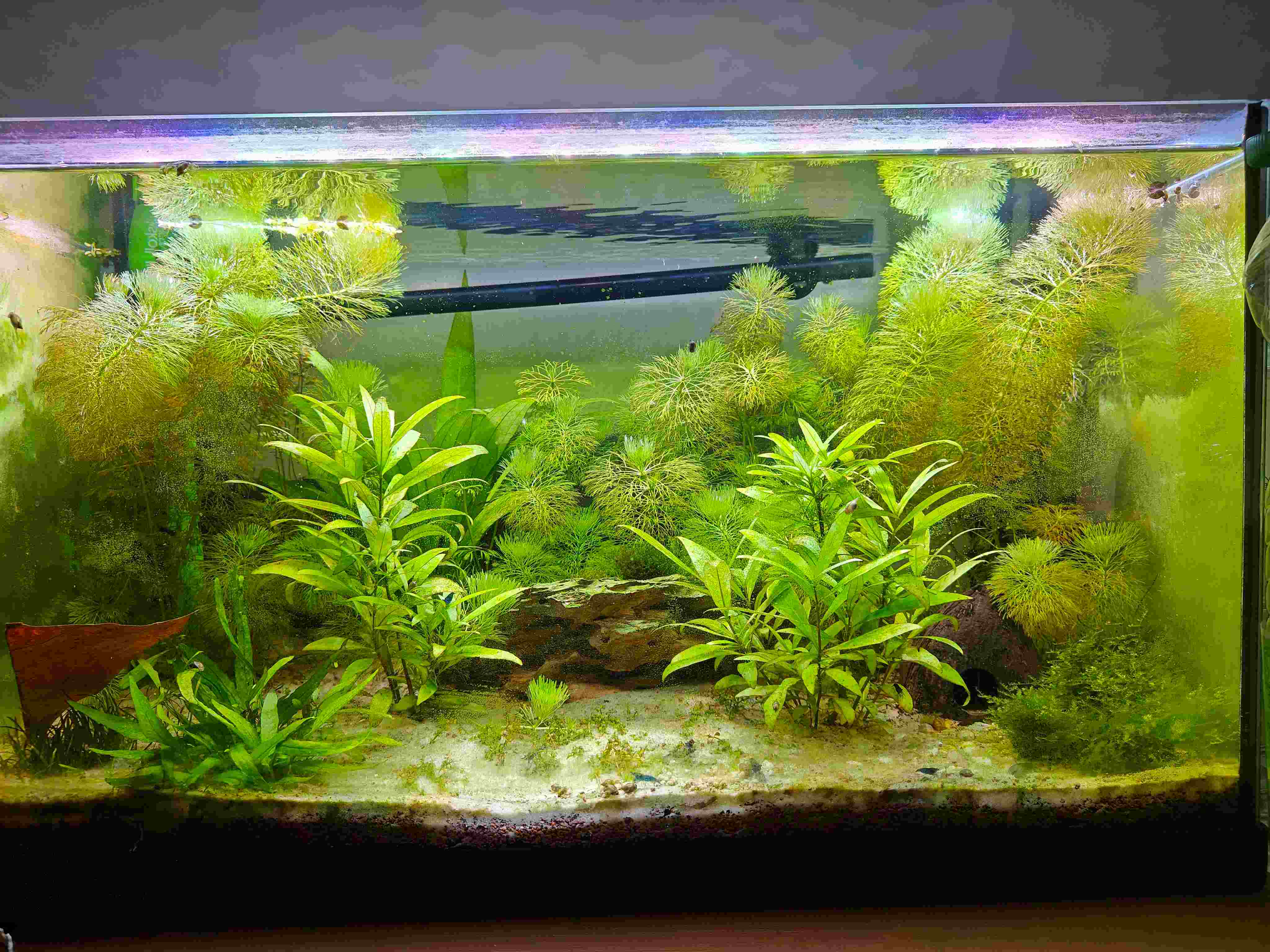 Bonsoir, Merci pour l'accueil :). Pour l'instant mon bac n'est pas très planté (mais il n'accueillera pas d'habitant tant que je ne le considérerais pas comme assez vert). Je prends note de tes conseils ! Pour le décor, je veux quelque chose d'assez simple, de la gazonnante sur l'avant, un peu de mousse sur la stone et proche de la coco et j'aimerai "camoufler" mon chauffage et ma canne d'entrée d'eau avec des plantes qui arriveront plus tard, ainsi qu'ajouter des plantes sur les cotés... Je souhaite mettre ma pierre en avant, d'où sa place centrale, légèrement surélevée.