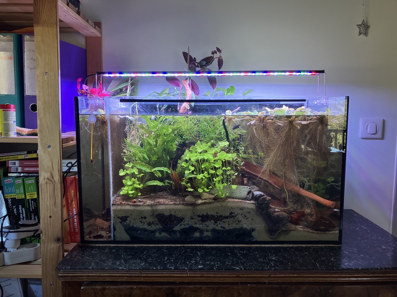 Bon et j'ai craqué, j'ai siphoné quelques alevins smaragdina que j'ai mis dans le compartiment à Daphnies...buffet royal et prédation impossible! On va voir ce que ça donne.