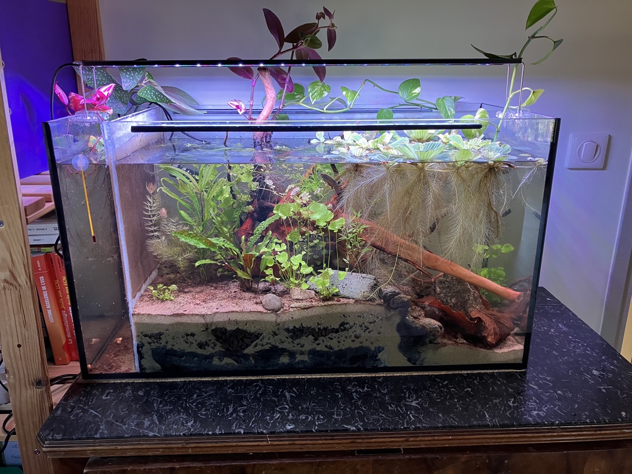 Vraiment beau ce bac ! Un petit écosystème aquatique. Et génial la partie bestioles... Ton expérience et celle de DarthCory me donnent envie de tenter de monter un petit bac pour daphnies et vers...