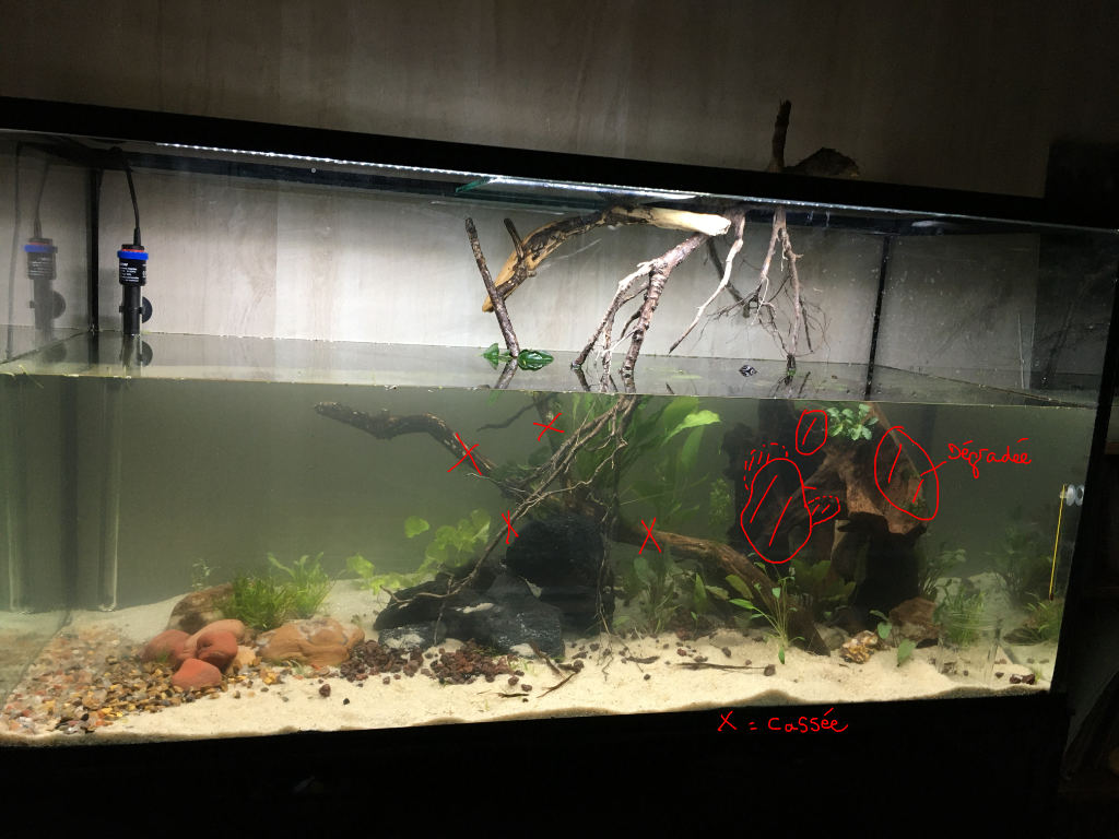 C’est pour ça que j’évoquais le remplacement par une autre racine, hélas les parties qui restent sont trop encombrantes pour l’ajouter sans rien toucher, surtout qu’une partie des epiphytes sort de l’eau.