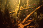 Pour ce qui est des biotopes amazoniens, il faut savoir que la majorité se composent d'enchevêtrements de racines et de quelques plantes et l'eau est souvent ambrée, cela étant dû aux tanins relargué par les déchets végétaux.