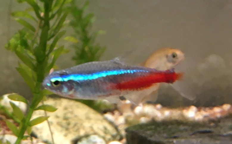 - 1 néon bleu (Paracheirodon innesi) ou un cardinalis (Paracheirodon axelrodi)   (quelqu'un pour m'éclairer ?)