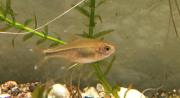 - 1 tétra cuivré (Hasemania nana) ? ainsi qu'un second poisson qui lui ressemble, mais semble atteint d'une déformation / maladie ?