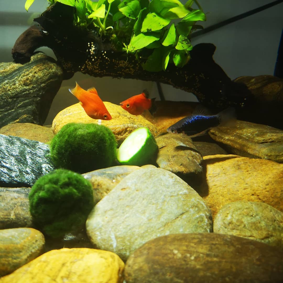 Étant donné que mes platy mangent leurs alevins et becquent la coquille des neritina je me suis dis qu'ils risquent de manger les crevettes !! Mais moi aussi j'ai eu l'idée dans la tête ! 😂