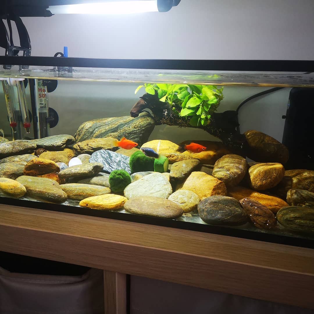 Par contre, tu risques d'avoir un problème d'hygiène dans ton bac rapidement, car un sol composé de galets offre de nombreuses interstices susceptibles de recueillir de nombreux déchets organiques tels que débris végétaux, restes de nourritures et éventuellement même un poisson mort...