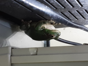 Je vous présente Ranehilde, qui a choisi de passer les fortes chaleurs dans mon aquarium, comme l’avait fait Ranegonde, sa grand-tante, l’année dernière. Je trouve cela plutôt rigolo. Mais est-ce que mes écrevisses, crevettes et futurs poissons risquent d’être à son menu ? Y a-t-il un risque de pollution de l’eau ?