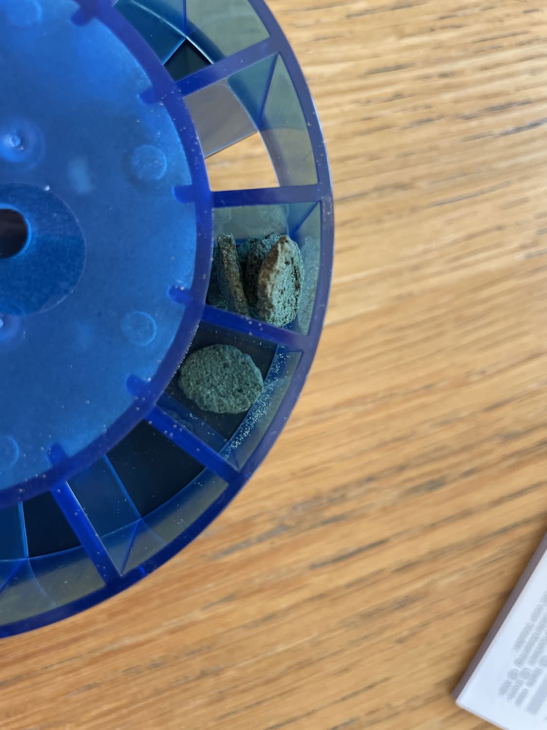 J'ai fait l’acquisition d'un distributeur Eheim 3581 pour les "granulés". J'ai besoin de mettre aussi des "croquettes" ou "pastilles" pour les poissons de fond, et en lisant les docs, commentaires et remarques, je n'ai pas osé prendre un modèle classique, à vis ou tambour comme le Eheim 3581, il y a risque de blocage des pastilles, et si on ouvre trop elles tombent par 24  , une joie pour les poissons mais pas pour leur ligne.