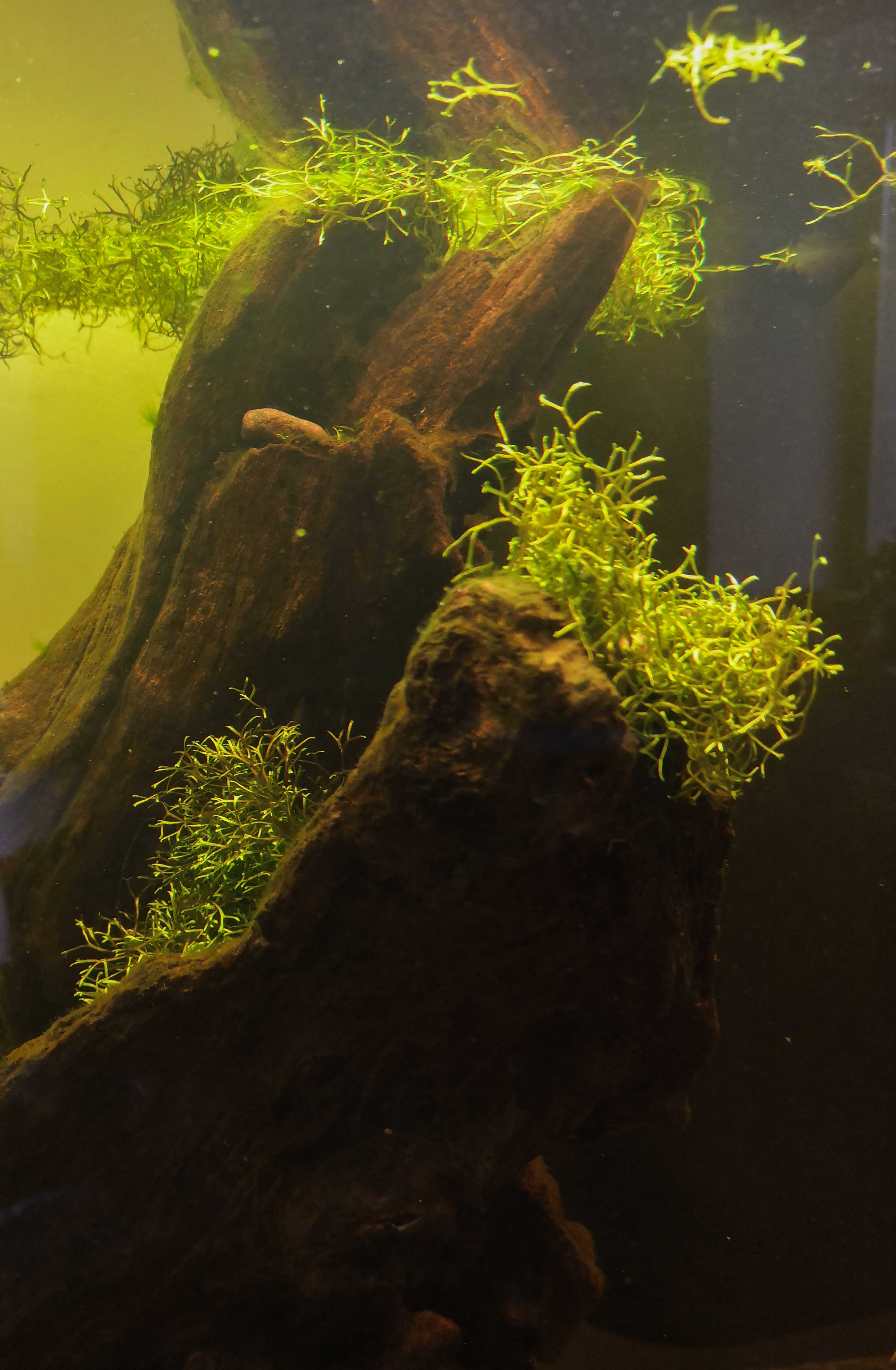 Ça fonctionne plutôt bien après deux jours de test. Les riccies ont tendance à se fragmenter et ne sont pas des sujets idéales, mais la Taxiphyllum tient à merveille.