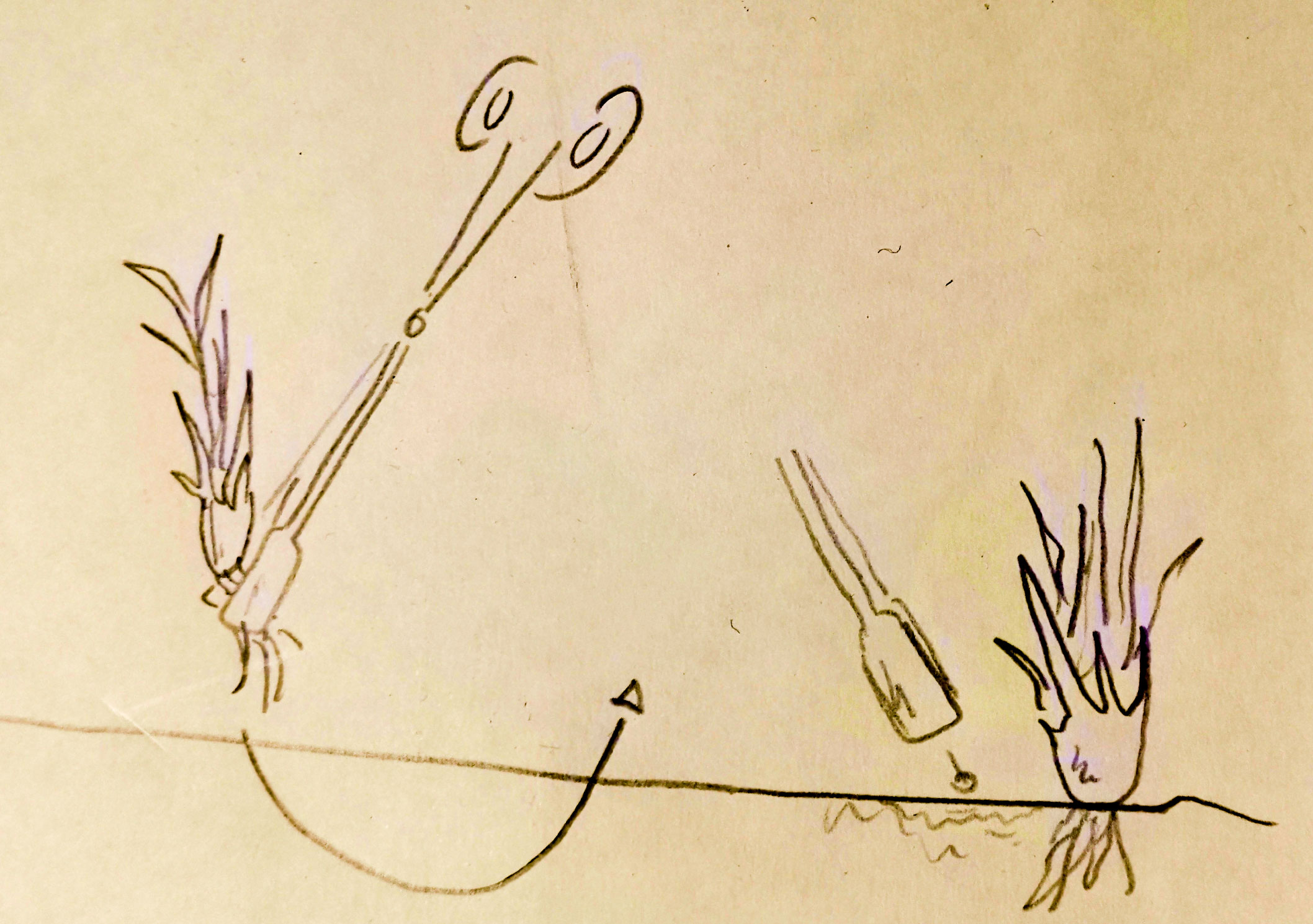 J'ai une méthode un peu différente : - je place d'abord la plante sur ma pince incurvée de manière à ce que la base de la plante (avec ou sans racine) soit juste à l'extrémité de la pince et que toute la partie incurvée pince la plante. - je plante ensuite délicatement en maintenant la partie incurvée (et donc la plante) à la verticale - j'enfonce la plante sur la totalité de la longueur de la partie incurvée de la pince - Pour éviter que la plante ne remonte complètement en sortant la pince, je bouge l'ensemble dans le sable par de petit mouvement bref pour que le sable reprennent sa place autour de la plante