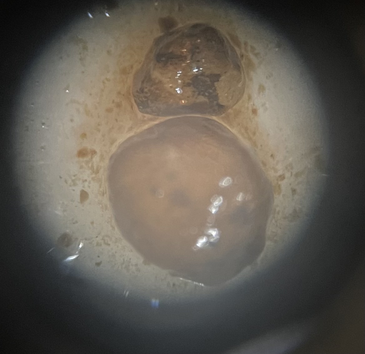 Et les petits débris, au microscope (x40) :