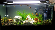Pour les plantes, je ne vois pas de problème particulier sinon qu'elles sont trop peu à mon goût. Vu la quantité de poissons, elles ne devraient pas avoir besoin d'engrais, ni de CO2 d'ailleurs. La Sewellia et l'Otocinclus me font peine en revanche. Ce sont des brouteurs d'algue vivant en banc... dans une eau turbulente et très fortement oxygénée. Un autre aquarium, ce serait une bonne idée, quand même.