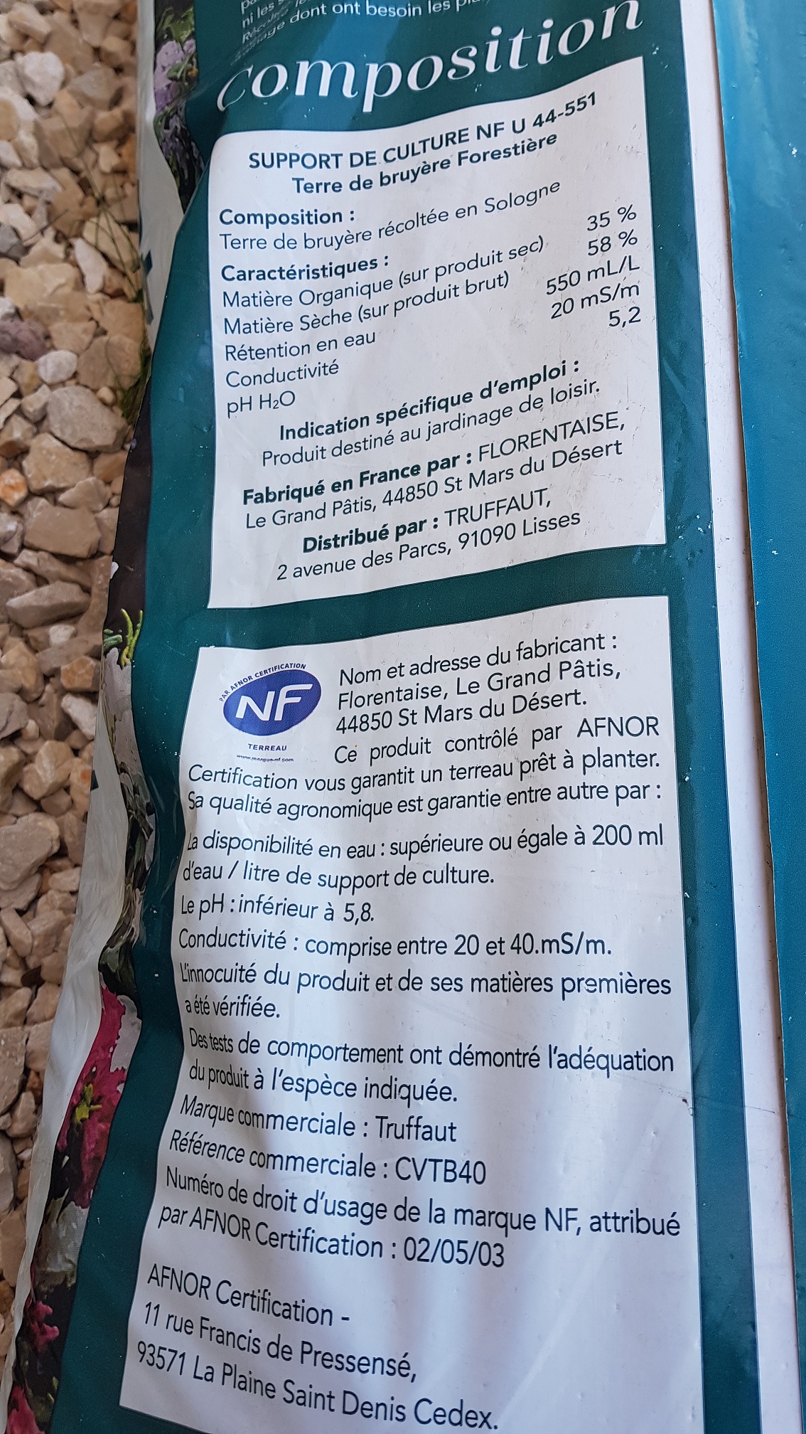 Ma terre de bruyère acheté dans une enseigne connue (je sais pas si on a le droit de le nommé (11€ les 40l pour ceux que ça intéresse), je vais la tamiser pour ne garder que le plus fin.