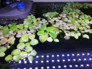 Je suis un peu étonné que les Salvinias et Grenouillettes ne se développent pas avec la teneur en nitrate de ton eau. Comme disait grand père j'ai l'impression que ton filtre cascade fait que certaines des plantes de surface passe en dessous des autre ce qui peut freiner leur développement surtout qu'il y a des remous.