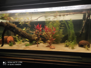 Bon je me lance, un peu de prose et quelques images pour vous présenter le 1er aquarium à être entrer dans la maison : un aquatlantis de 140 litres acheté sur le coin coin. La bête était fournie avec filtre externe cristalprofi e900, 2 chauffages 150 et 50 watts, 2 bulleurs, les 2neons de 6 mois ( t8 2*30watt) une multitude de test en goutte, des flacons contre les points blancs, de la nourriture,une épuisette...bref beaucoup de matos pour un néophyte. l aquarium, une envie du gamin zore ..On lui offre pour son anniv en novembre 2019.Sauf que nouvelle maison, travaux, placo , poussière ....l aquariuma servi de rangement à décoration de noël jusqu en janvier decette année. novembre 2019,janvier 2021 vous allez dire ca laisse le temps de peaufiner le projet.. Que nenni ! début janvier,fin des travaux ( presque , y en a toujours a faire ) on s attaque a la mise en place .. visite chez les marchands et 1ere désillusion, un aquarium c est pas juste un poisson dans un bocal avec de l eau. faut acheter du manado, faut acheter du sable, faut acheter des plantes, faut changer les néons, faut acheter la mallette de test..bref faut sortir lamonnaie et pas qu un peu Que ne ferait on pas pour le bonheur de ses enfants ( respect à tout ces poissons qui mangent leurs œufs avant d avoir des soucis avec leurs progénitures)
