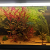 en zoomant sur le centre densément planté ca donne ça. la plante rouge peut se nommer également cardinalis apparemment. Entre elle et les deux grandes vertes de derrière( elodée et l autre je retrouve pas son nom ) je crois que je peux couper un peu et bouturer pour préparer mon second bac.