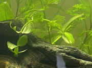 Voilà quelques nouvelles aussi sur cet aquarium. C'est le paradis des escargots : physes, planorbes et depuis quelques jours j'ai ajouté 2 Tarebia granifera en espérant qu'ils enfouissent les crottes des autres ! Sans doute l'effet de la racine, car c'est ma seule différence avec mon 50L et de l'autre côté je n'ai pas d'invasion. J'ai vu une dizaine de "bulles" qui présagent de la naissance de petits d'ici quelques jours...