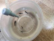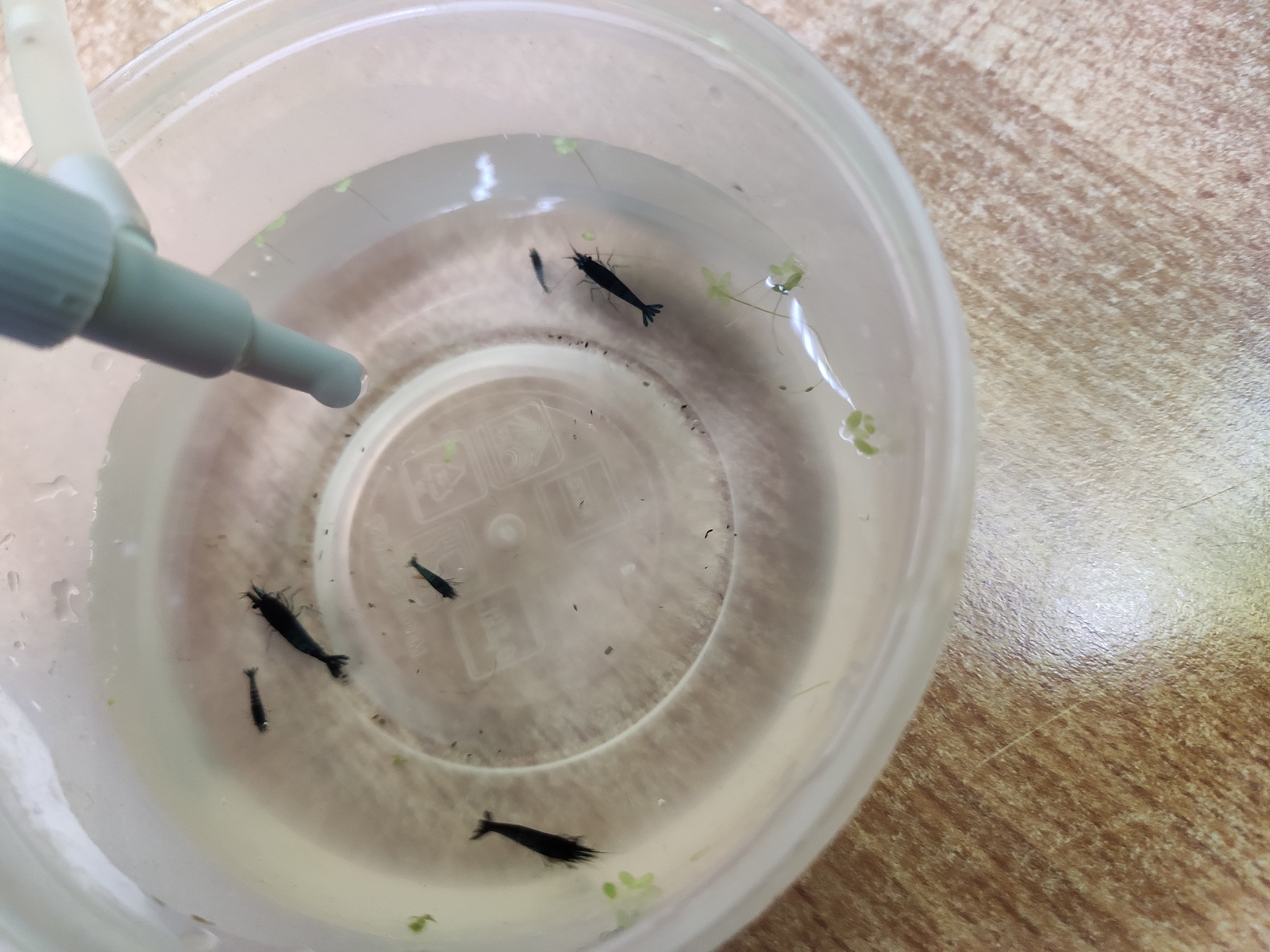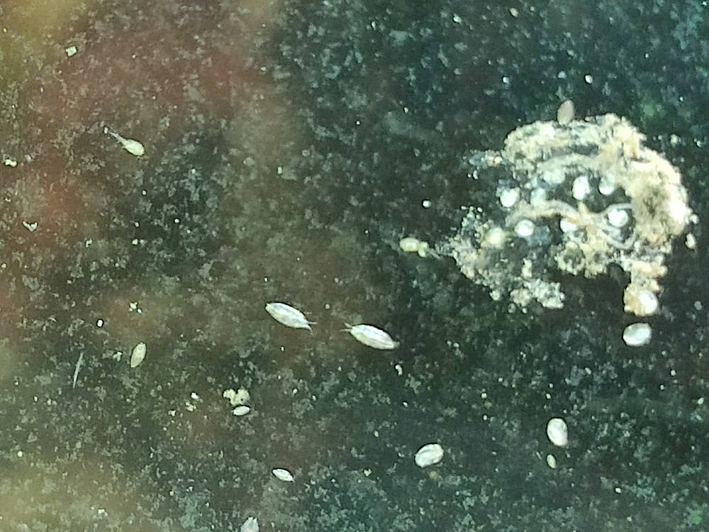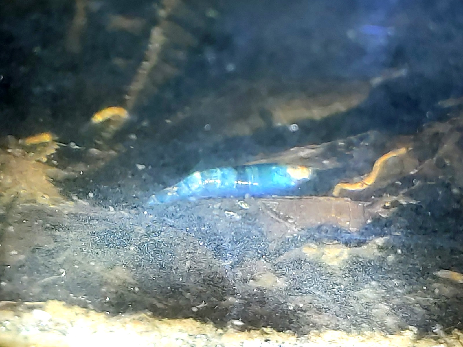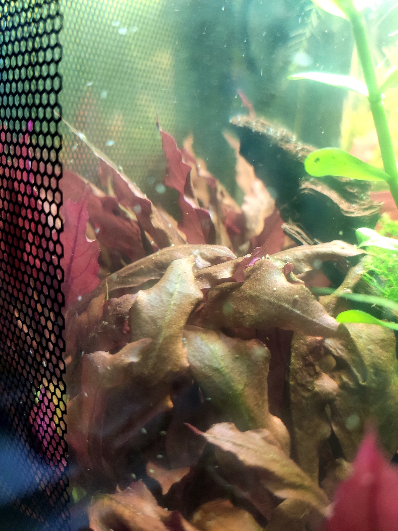 L'introduction se passe bien, elles se baladent et gratouillent partout, surtout dans la mousse et sous les flottantes. Le lendemain, j'avais peu de temps, donc un regard vite fait, seulement une en vue, mais pas le temps de chercher. Le soir, rampe éteinte, je jette un œil, et je tombe sur ça (désolé pour la qualité, je n'ai toujours pas remplacé mon APN):