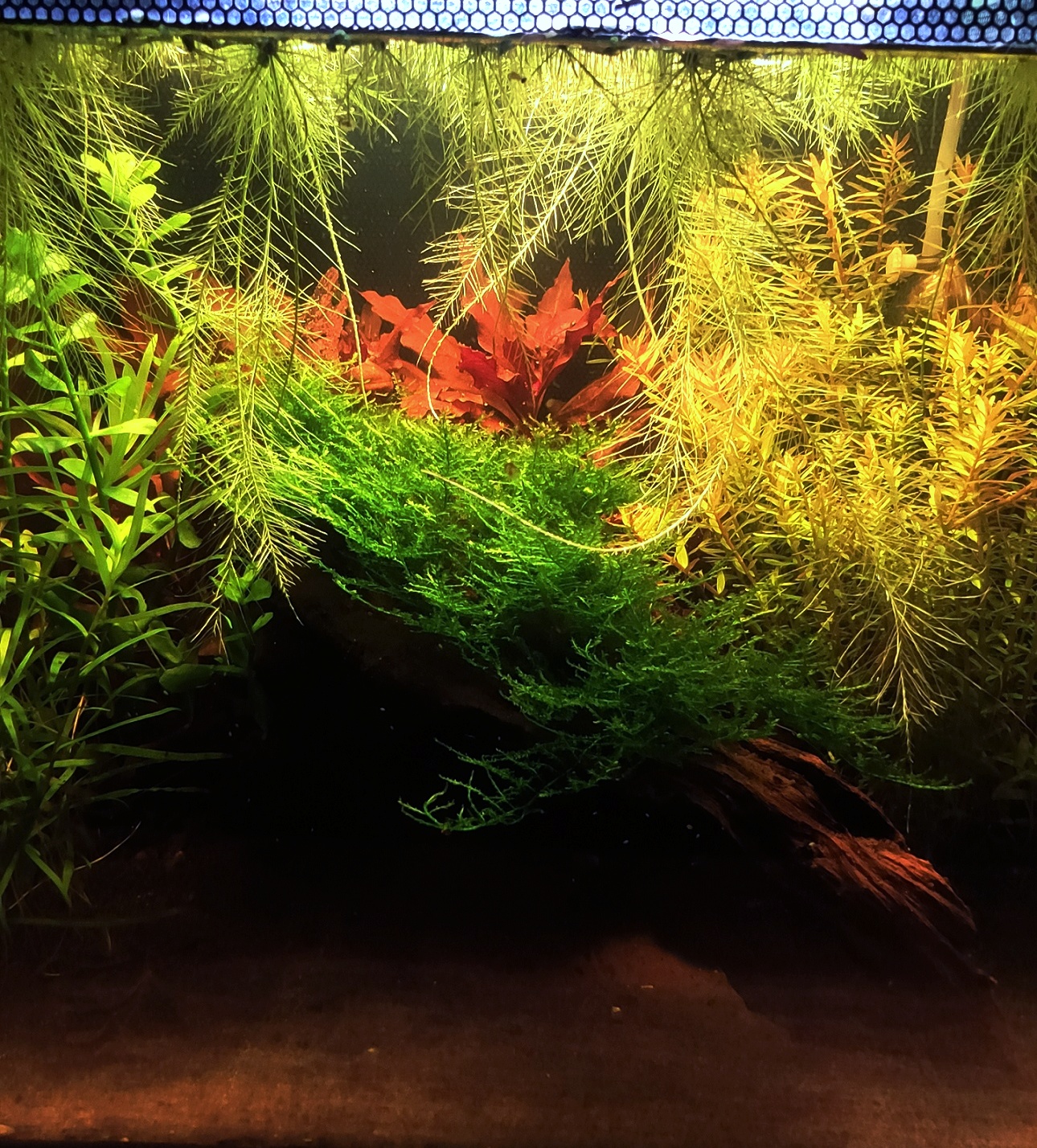 Je vous sollicite pour m'aider à trouver une ou 2 autres plantes pour renforcer la "filtration" naturelle, je souhaite en faire un ANP, j'ai 1400 lumens sous le capot. Pour la photo, je suis à 50% de puissance, une petite pompe de 200L/h et une cloche de CO2 donné pour jusqu'à 60L.