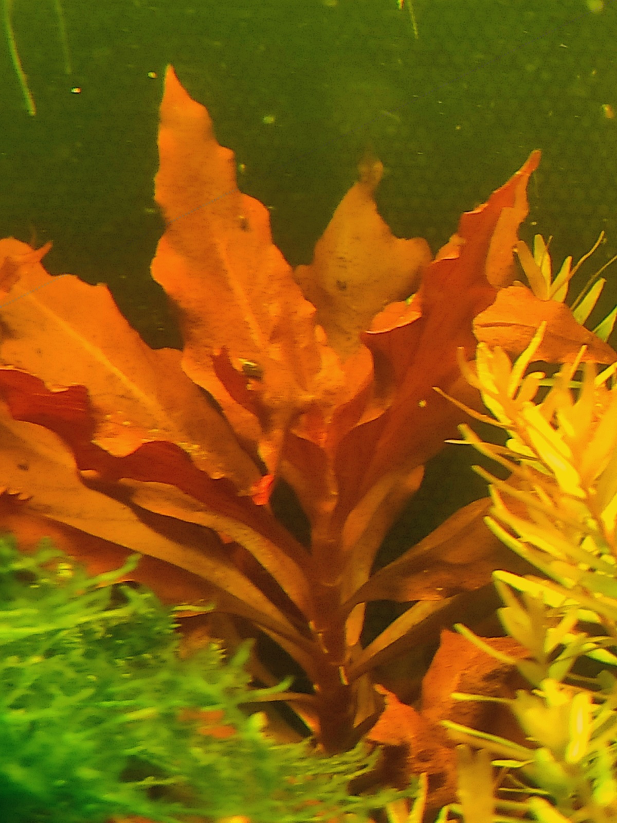 - Alternanthera cardinalis (Ne pousse pas en hauteur mais des tiges bien étoffées, et des feuilles bien rouges et ondulées)