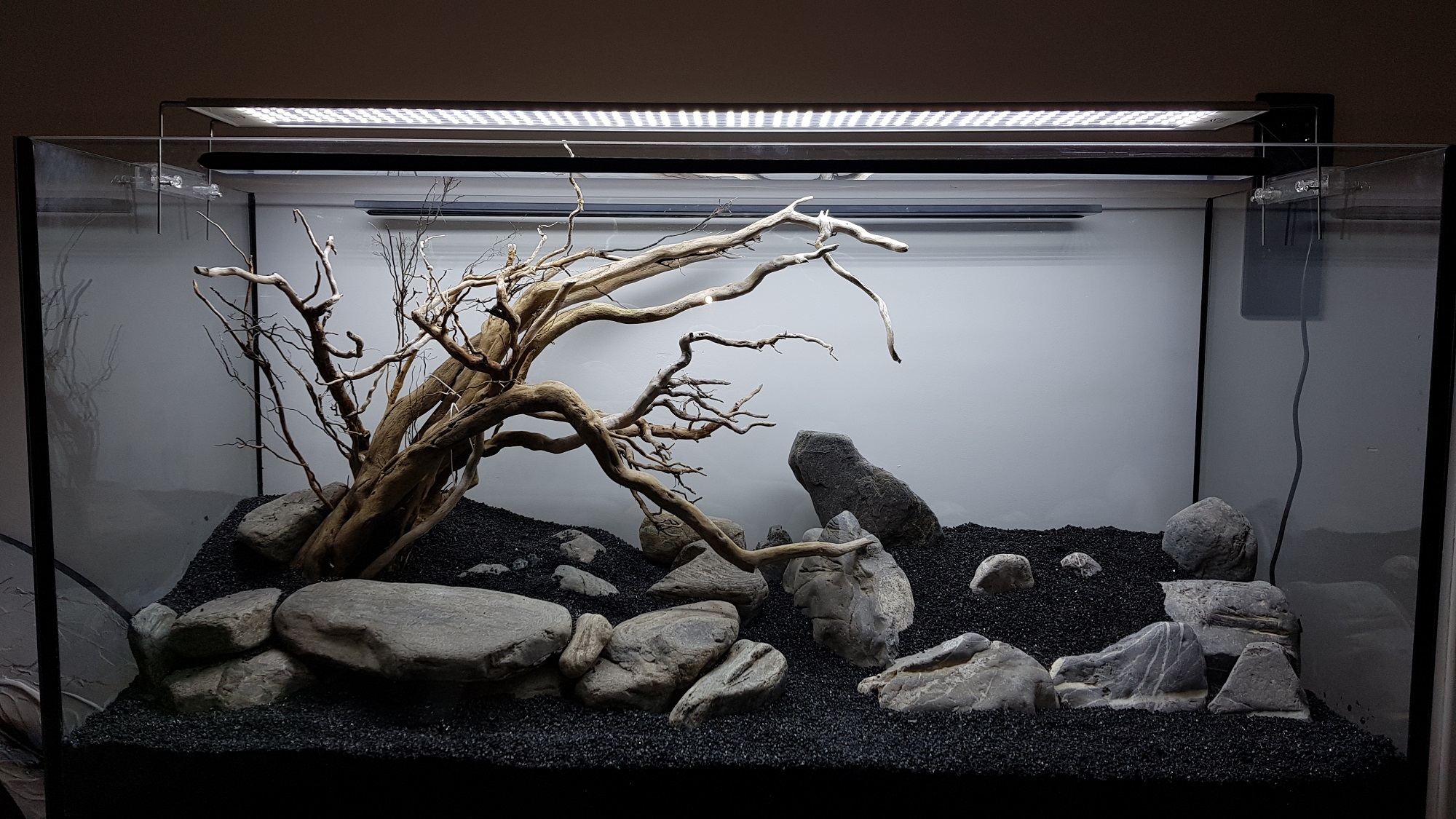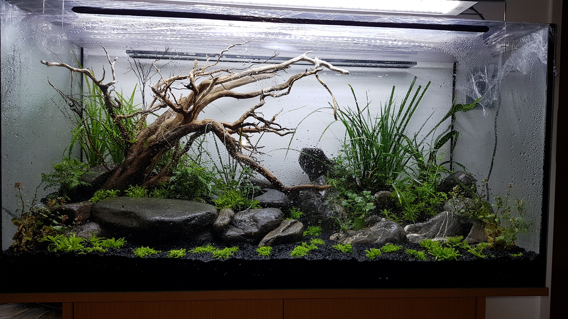 P. stellatus est réputée difficile, les crypto. n'apprécient pas la DSM et il faudra surveiller l'accès à la lumière pour certaines... Mais j'aime bien la tournure que prend ce projet. Le placement du décor est superbe ! Ce dernier ne facilitera pas la DSM en revanche. Il faudra à la fois éviter l'eau stagnante en bas et l'humidité importante en haut.