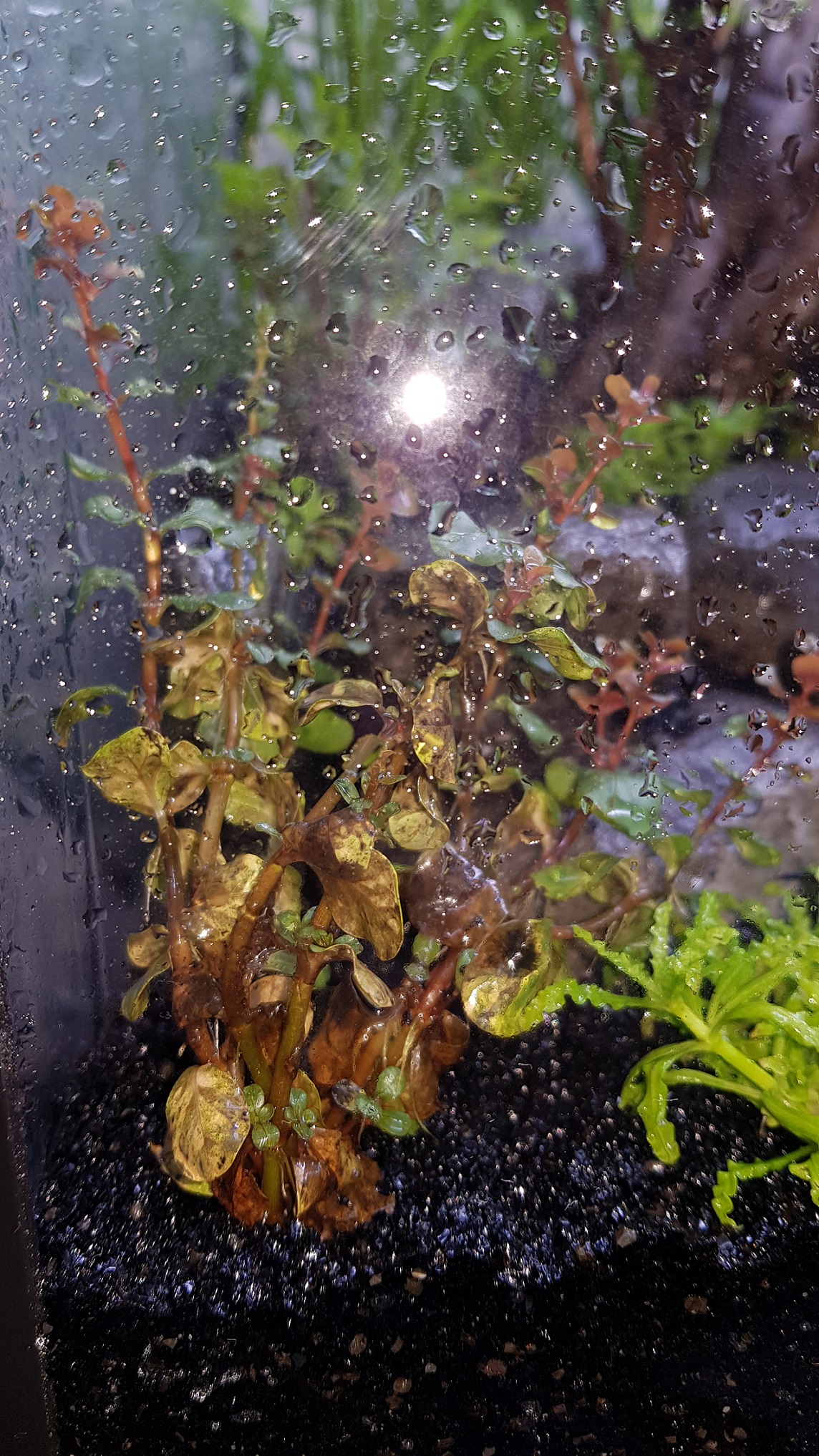 Des nouvelles 10 jours après le début de la DSM, pas de grands changements, toute les plantes ont l'air de se plaire sauf la Rotala rotundifolia qui, malgré quelques jeunes pousses, est très abimée.
