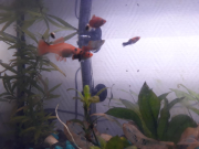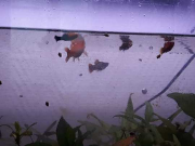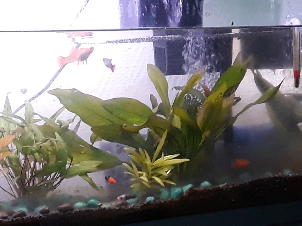 La j'ai une photo des 3 femelles et des 3 alevins platys qui vont bien le mâle n'es pas sur la photo mais il va bien!!!😊😊😊😊