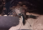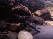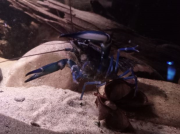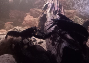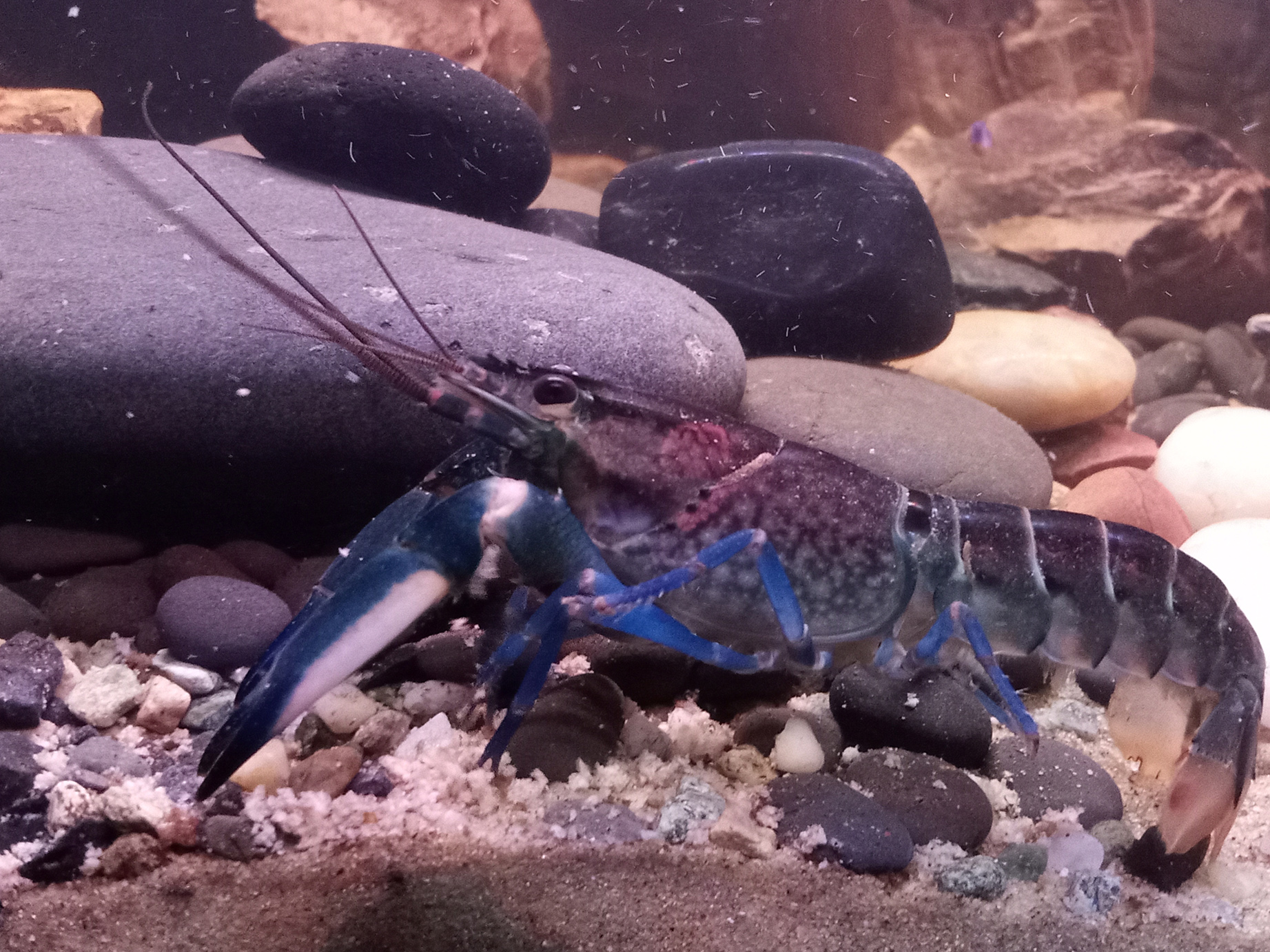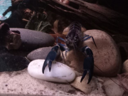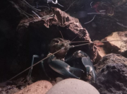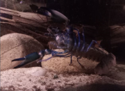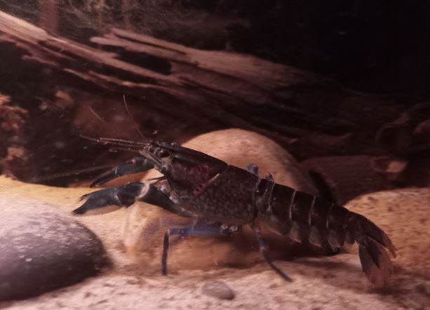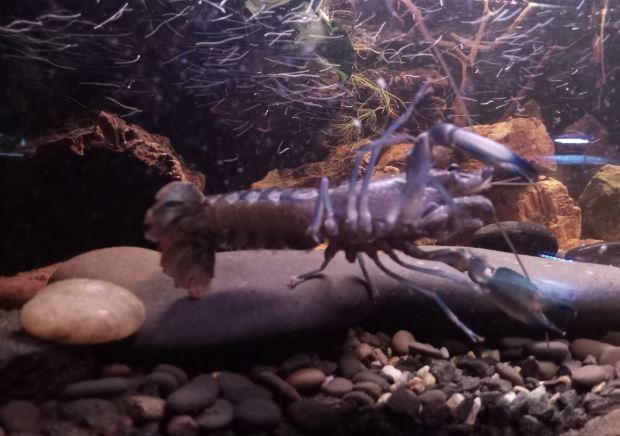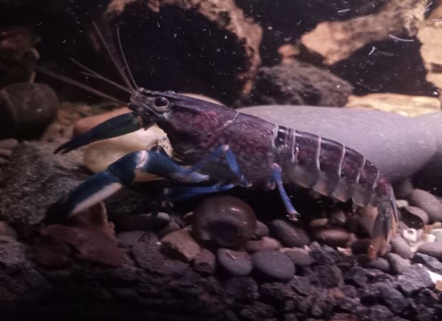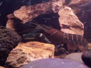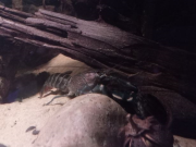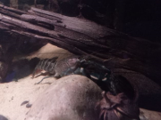 Z est plus en défense de territoire, SW moins, je ne sais pas trop ce qu'elle veut. Je les nourris tous les deux à la pince, et tantôt ils prennent calmement, tantôt ils attaquent la pince ou ont peur avant de revenir. Je sais que les écrevisses n'ont pas une intelligence très développée et ne s'apprivoisent pas vraiment, mais elles peuvent normalement arribver à m'identifier comme "non-menaçant" avec le temps et l'habitude. Elles ne sont là que depuis 15 jours. Je comprends pourquoi elles sont parfois qualifiées d'animaux dangereux, et qu'il ne faut pas nourrir à la main les adultes car Z pour prendre la nourriture, se jette sur la pince, la bloque avec ses deux pinces clampées dessus et ensuite il attrape la nourriture avec ses pattes avant et les petits membres près de sa bouche.