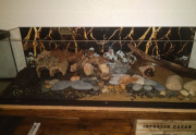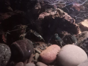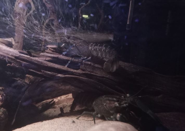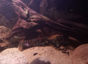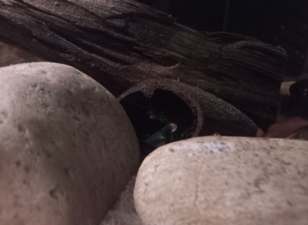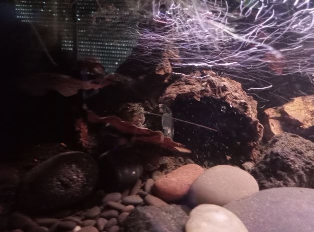 - Bois : 1 racine mangrove qui va jusqu'à la surface, une petite racine mopani pour l'anubia - Pierres : Roches de rivière, dragon stones, galets, black lava, bois fossilisé - Cachettes : Tubes en écorce de liège collées aux pierres, cosses, grottes de pierres collées ensembles - Nombreuses feuilles mortes et cosses "biotope" que je rajoute toutes les semaines tellement elles en mangent. - Eclairage : lampe standard, plutôt dans les tons blanc/bleu/rouge, car les écrevisses n'aiment pas les lumières violentes et il y a très peu de plantes - Filtration : Filtre interne 450L/h avec venturi à gauche avec Seachem matrix et filtre interne avec mousse uniquement et venturi 450L/h à droite (une pompe avec une mousse en fait)