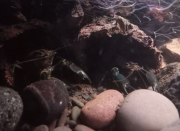 Tout d'abord, merci à tous pour vos commentaires. Le dépôt n'est pas revenu après mon (petit) nettoyage. Par contre il s'est passé des choses intéressantes chez les écrevisses. ZhaïtanTout d'abord je me suis inquiété (pour rien) car Zhaïtan était souvent couché sur le côté, voir presque sur le dos. J'ai cru à un problème d'équilibre même s'il se déplaçait normalement dans l'aquarium. Après des recherches sur les sites anglos (pas mal d'articles sur les écrevisses comme elles sont aussi animaux d'élevage pour la consommation, doù des recherches de meilleure repro/productivité etc), il s'avère que c'est une position normale (bien que très bizarre) quand elles dorment. Couchées sur le côté voir presque sur le dos, leurs système nerveux montre des ondes de sommeil. Elles se couchent également sur le ventre, mais c'est assez perturbant quand on connait plus les crevettes, qui ne montrent pas vraiment de réelles phases de sommeil visibles à l'oeil nu. Ensuite, Zhaïtan a commencé à faire du kidnapping de planorbe. Il les attrape, les ramène dans son terrier mais n'essaie pas de les manger. Mais les pauvres planorbes sont prisonniers car quand ils partent il les récupère pour les rapporter au terrier de nouveau. Les planorbes ont fini par partir pour de bon quand il dormait. Et ils ont profité de leur "captivité" pour manger le stock de nourriture de la cachette et en faire le nettoyage  Zhaïtan qui dort sur le côté avec son planorbe fétiche.  Zhaïtan qui dort couché à plat.