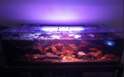 - Eau : 50% conduite et 50% osmosée car les cherax pulchers préfèrent une eau plus douce que beaucoup d'autres écrevisses et mon eau de conduite est très dure. - Plantes : 1 anubia et beaucoup de flottantes, pistias, limnobium, cerato, phyllanthus. Les racines des pistias et limnobium sont taillées régulièrement par les écrevisses qui les dévorent et les tirent depuis le fond ou perchées sur la racine.
