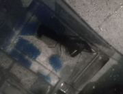 Photo au flash de SW qui se cache après avoir déjà creusé un trou...