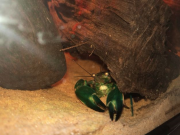 Elle est notée comme très pacifique et creusant peu. Je vous présente donc le jour de leur arrivée, en acclimatation : Soo-Won, la femelle, 6 cm