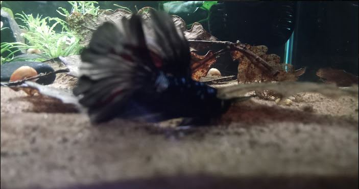 Grandpère va me dire qu'un blackwater pour un betta c'est pas très biotope, et je suis d'accord, mais ce n'était pas prévu qu'il soit si sombre, j'ai juste suivi les recommandations de mettre des feuilles mortes et des plantes pour qu'il soit bien  Mais du moment qu'il y a des feuilles mortes qui tombent dans de l'eau stagnante... J'ai vu des vidéos avec des bettas dans la nature dont l'eau était bien dark. Comme ces endroits en Thaïlande - d'où vient Bruce.