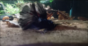 Escargots et crevettes, rien ne lui résiste, c'est un chasseur. Sully, avatar half-moon en cours de coloration. A son arrivée.